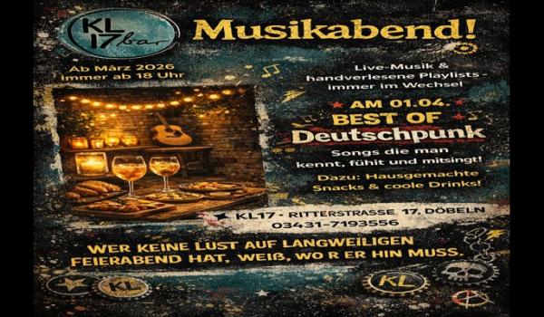 Ob Tasting-Events, Live-Musik oder spannende Sporthighlights auf DAZN – in der KL17 Bar ist immer etwas los. Folge uns auf Facebook und bleib immer top informiert! Handgemachte Chocktails, hausgemachtes Essen, Barkultur. Das Team des KL17 freut sich auf Euer Erscheinen.